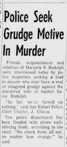 On February 2, 1966, Marjorie Rudolph, a 60-year-old wife of a prominent banker, was brutally murdered while alone in her home in San Rafael, California. The San Rafael Police Department responded and opened a homicide investigation. At the time, a possible suspect was identified, but he could not be definitively linked to the crime. At the Rudolph home, detectives found cigarette butts that were a different brand than the ones smoked by the people who were generally in the home, leading investigators to believe they belonged to the killer.
